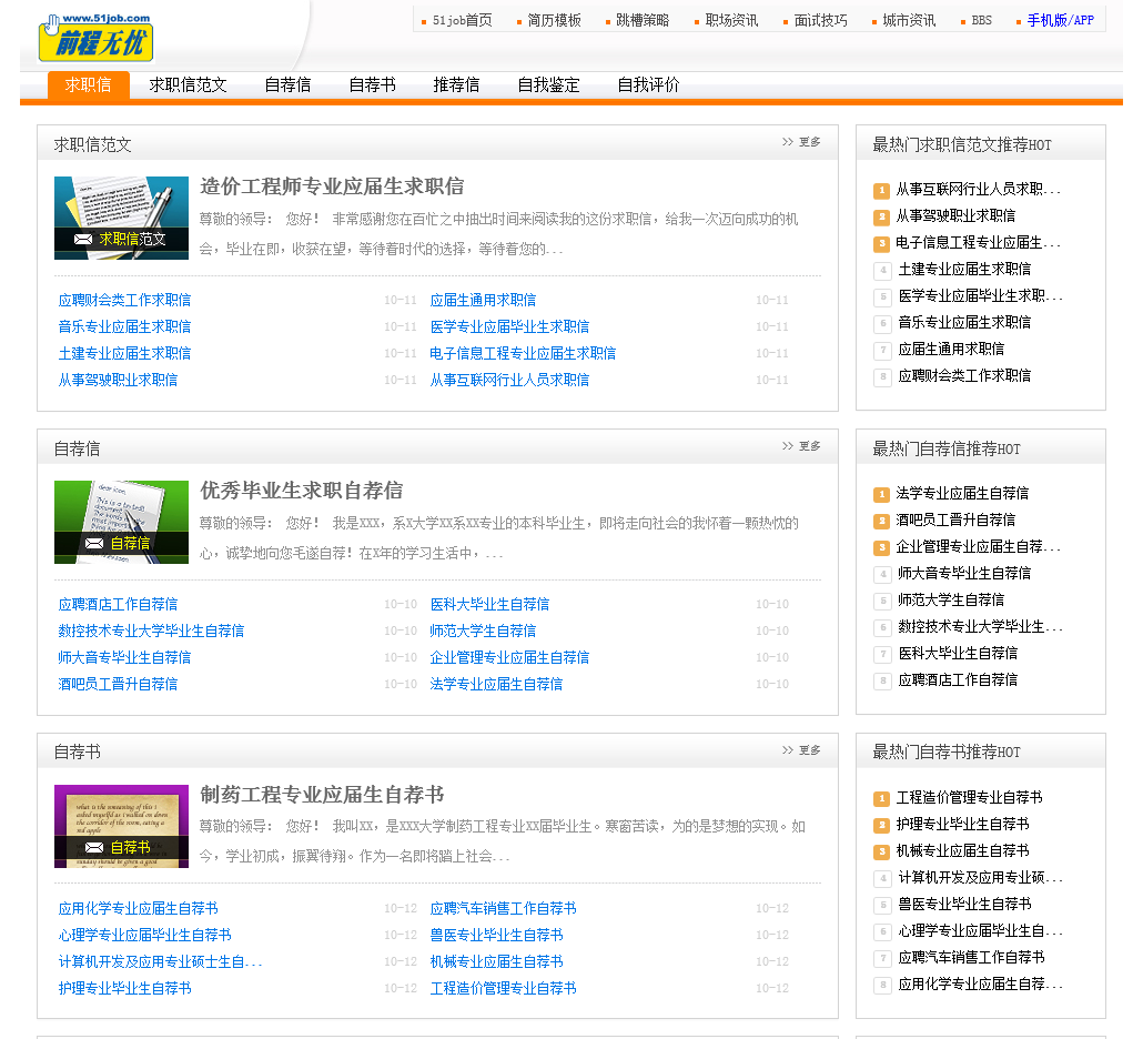 51job求职信频道