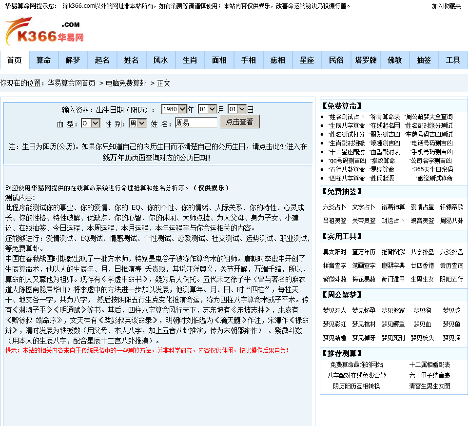 - 网站名称:华易算命网