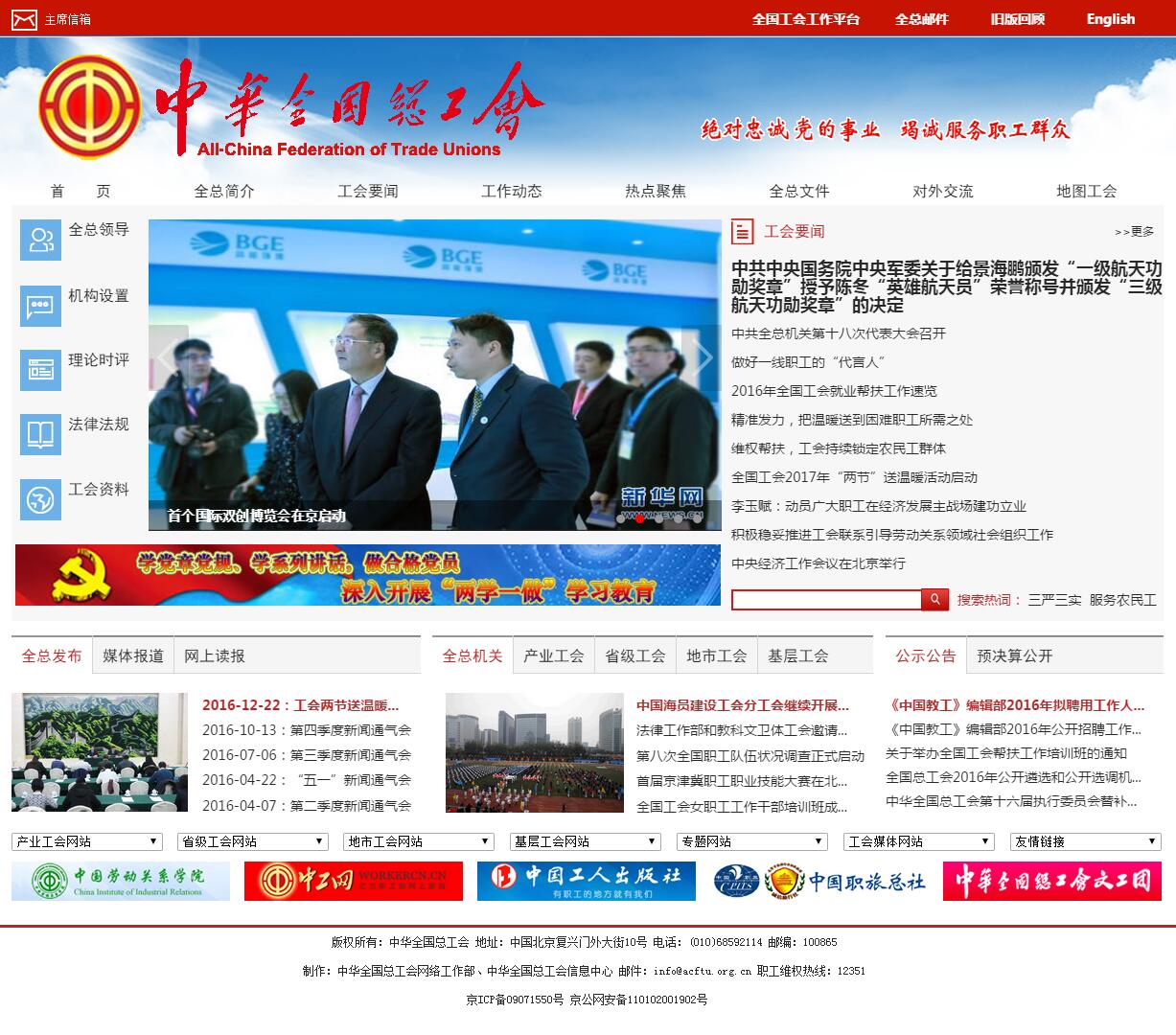 中华全国总工会网站于2020-07-15被0702投稿网收录,网站相关信息来自互联网或网友分享!由于(中华全国总工会网站)网站内容动态属性,时刻在变动,本站无法保证(中华全国总工会网站)网站内容真实可靠!请大家查阅时,谨慎选择、自辩真伪,感谢您的理解与支持。如果您在访问(中华全国总工会网站)时发现:网址失效、或网站存在非法等相关内容,请及时联系我们,我们会第一时间处理。