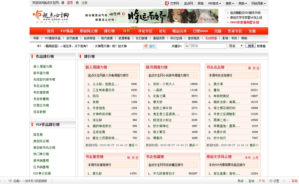 - 网站名称:女生完结小说排行榜