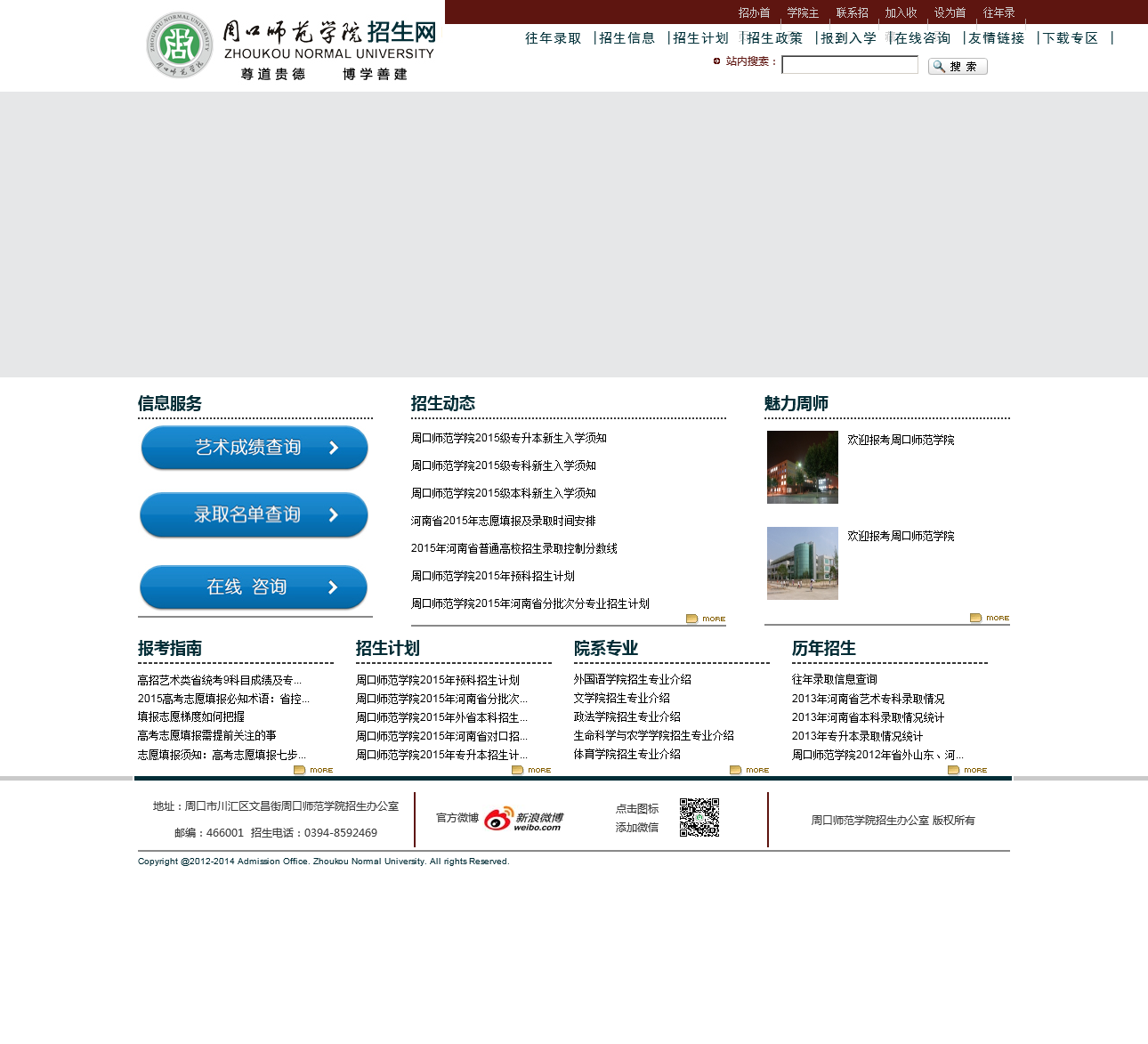 周口师范学院招生网是周口师范学院官方网站下的招生专网,主要针对想报考周口师范学院的考生,发布各类本科招生信息。