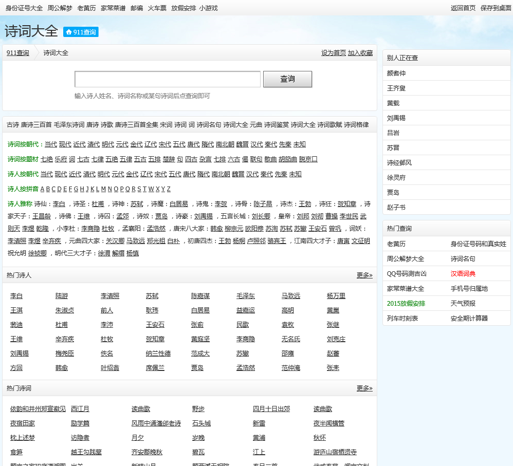 - 网站名称:911查询诗词大全