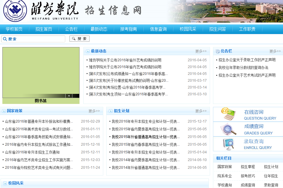- 网站名称:潍坊学院招生信息网
