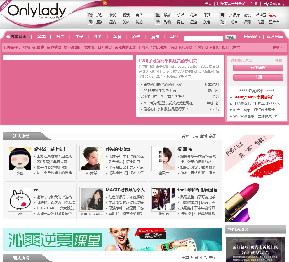 OnlyLady博客主要有美容护肤、创意彩妆、潮流时尚、人气美食、塑身健体、亲子情感等内容;同时聚集百位美容时尚领域的意见领袖,一起与共同爱好时尚和美丽的女性博友分享和交流女性相关的话题!