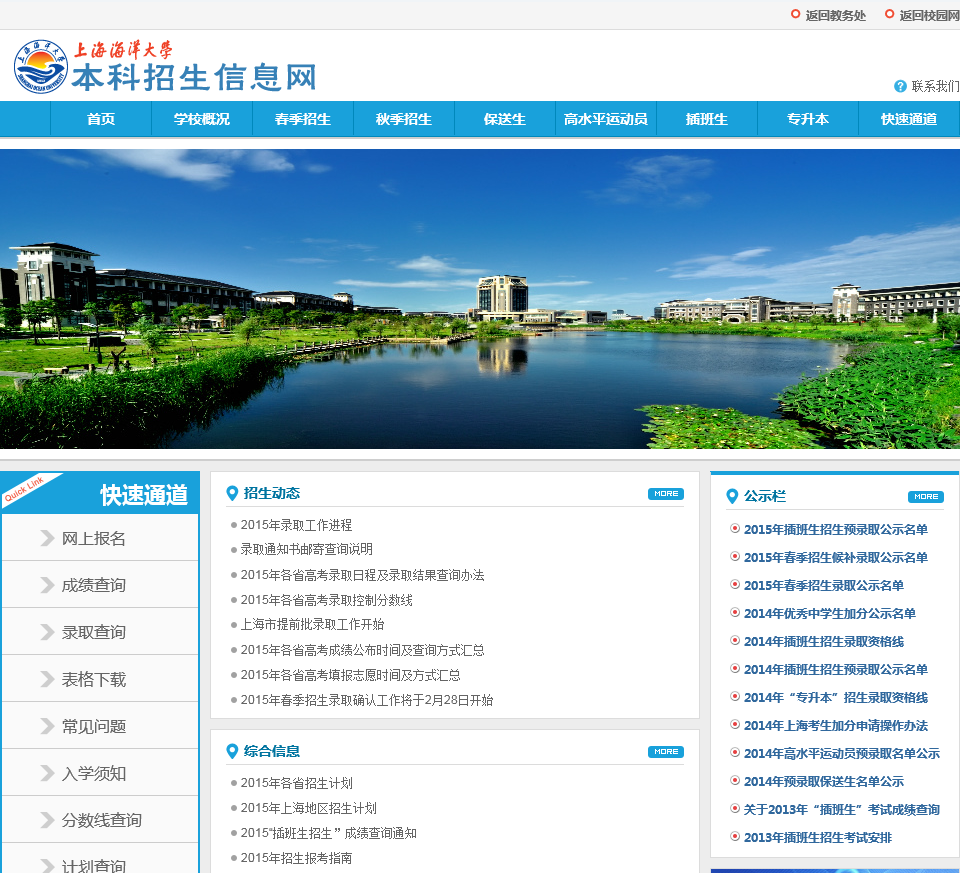上海海洋大学招生网是上海海洋大学官方网站下的招生专网,主要针对想报考上海海洋大学的考生,发布各类本科招生信息。
