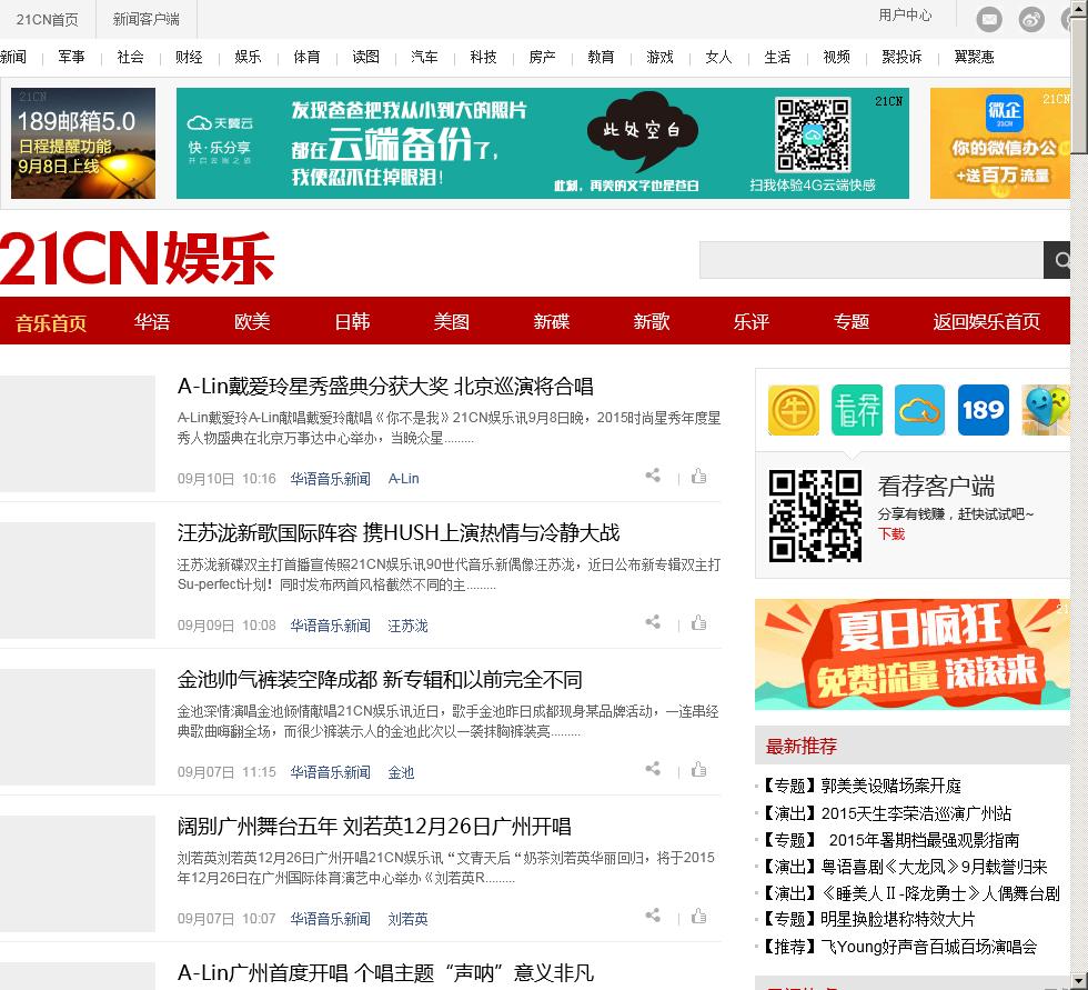 - 网站名称:音乐频道-21CN