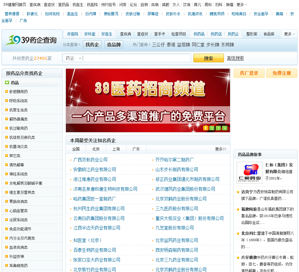 - 网站名称:39健康网药企库