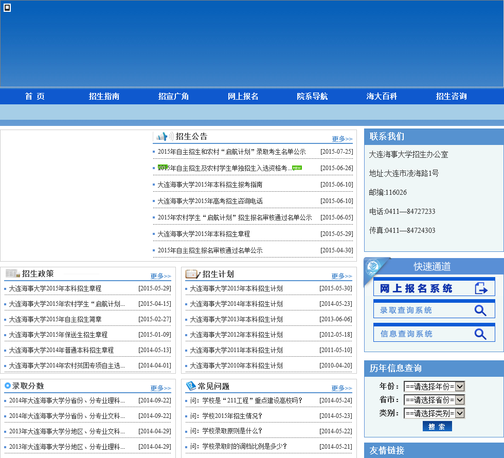 大连海事大学本科招生网于2020-07-18被0702投稿网收录,网站相关信息来自互联网或网友分享!由于(大连海事大学本科招生网)网站内容动态属性,时刻在变动,本站无法保证(大连海事大学本科招生网)网站内容真实可靠!请大家查阅时,谨慎选择、自辩真伪,感谢您的理解与支持。如果您在访问(大连海事大学本科招生网)时发现:网址失效、或网站存在非法等相关内容,请及时联系我们,我们会第一时间处理。