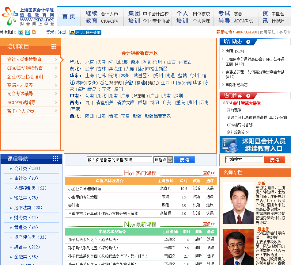 上海国家会计学院远程教育网(www.esnai.net )是学院旗下面向广大财会人员的在线培训网站。学院建院伊始即成立了远程教育网,是国内早开展会计远程教育的专业网站,也是财政部重点建设的财会类远程教育网站。