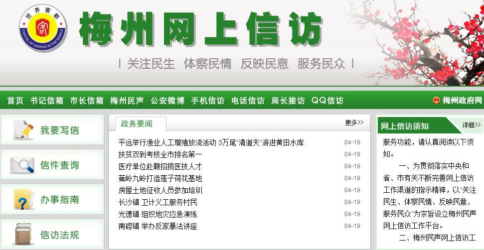 - 网站名称:梅州民声网上信访