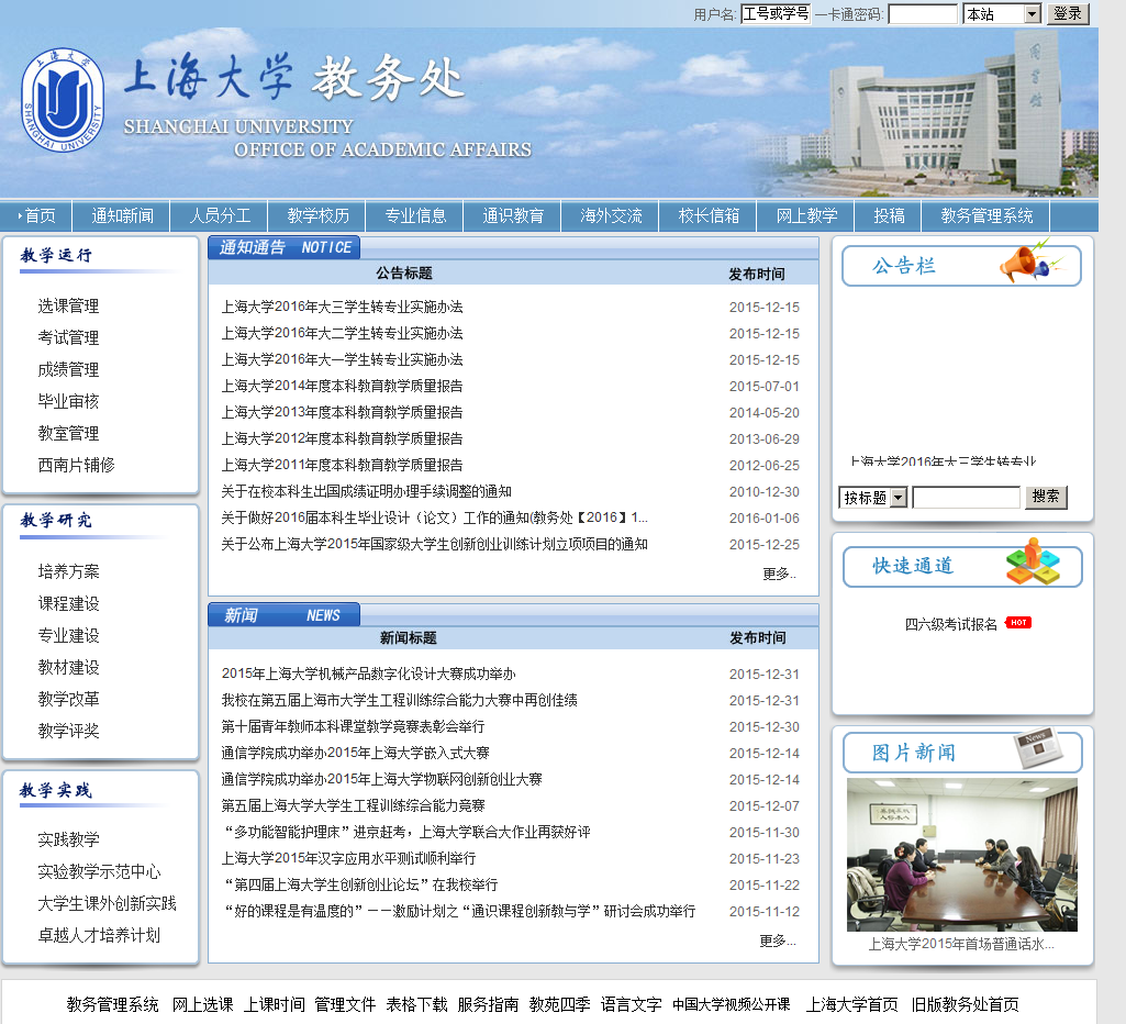 上海大学教务处于2020-07-18被0702投稿网收录,网站相关信息来自互联网或网友分享!由于(上海大学教务处)网站内容动态属性,时刻在变动,本站无法保证(上海大学教务处)网站内容真实可靠!请大家查阅时,谨慎选择、自辩真伪,感谢您的理解与支持。如果您在访问(上海大学教务处)时发现:网址失效、或网站存在非法等相关内容,请及时联系我们,我们会第一时间处理。