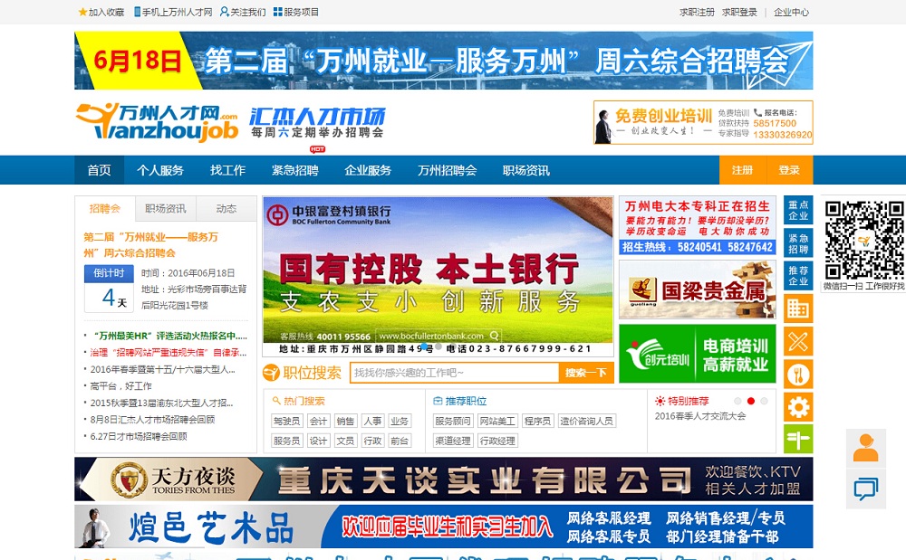 万州人才网于2020-07-18被0702投稿网收录,网站相关信息来自互联网或网友分享!由于(万州人才网)网站内容动态属性,时刻在变动,本站无法保证(万州人才网)网站内容真实可靠!请大家查阅时,谨慎选择、自辩真伪,感谢您的理解与支持。如果您在访问(万州人才网)时发现:网址失效、或网站存在非法等相关内容,请及时联系我们,我们会第一时间处理。
