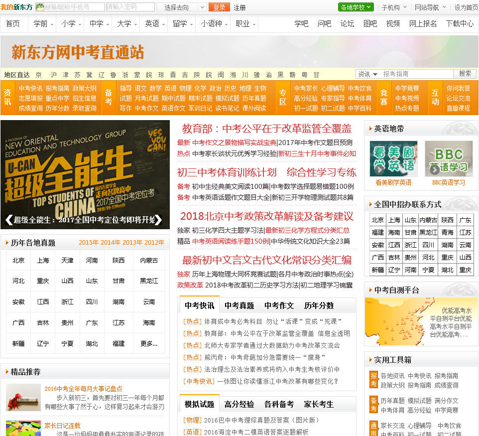 - 网站名称:新东方网中考频道
