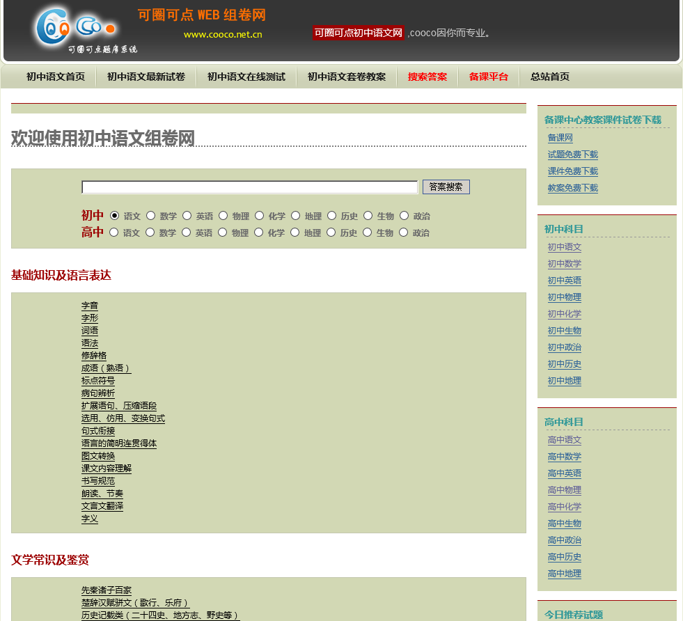 - 网站名称:初中语文网