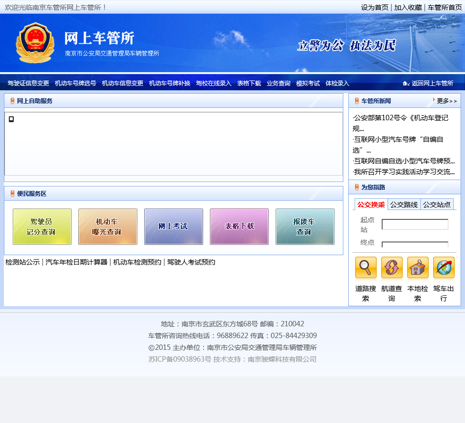 南京车管所于2020-07-19被0702投稿网收录,网站相关信息来自互联网或网友分享!由于(南京车管所)网站内容动态属性,时刻在变动,本站无法保证(南京车管所)网站内容真实可靠!请大家查阅时,谨慎选择、自辩真伪,感谢您的理解与支持。如果您在访问(南京车管所)时发现:网址失效、或网站存在非法等相关内容,请及时联系我们,我们会第一时间处理。