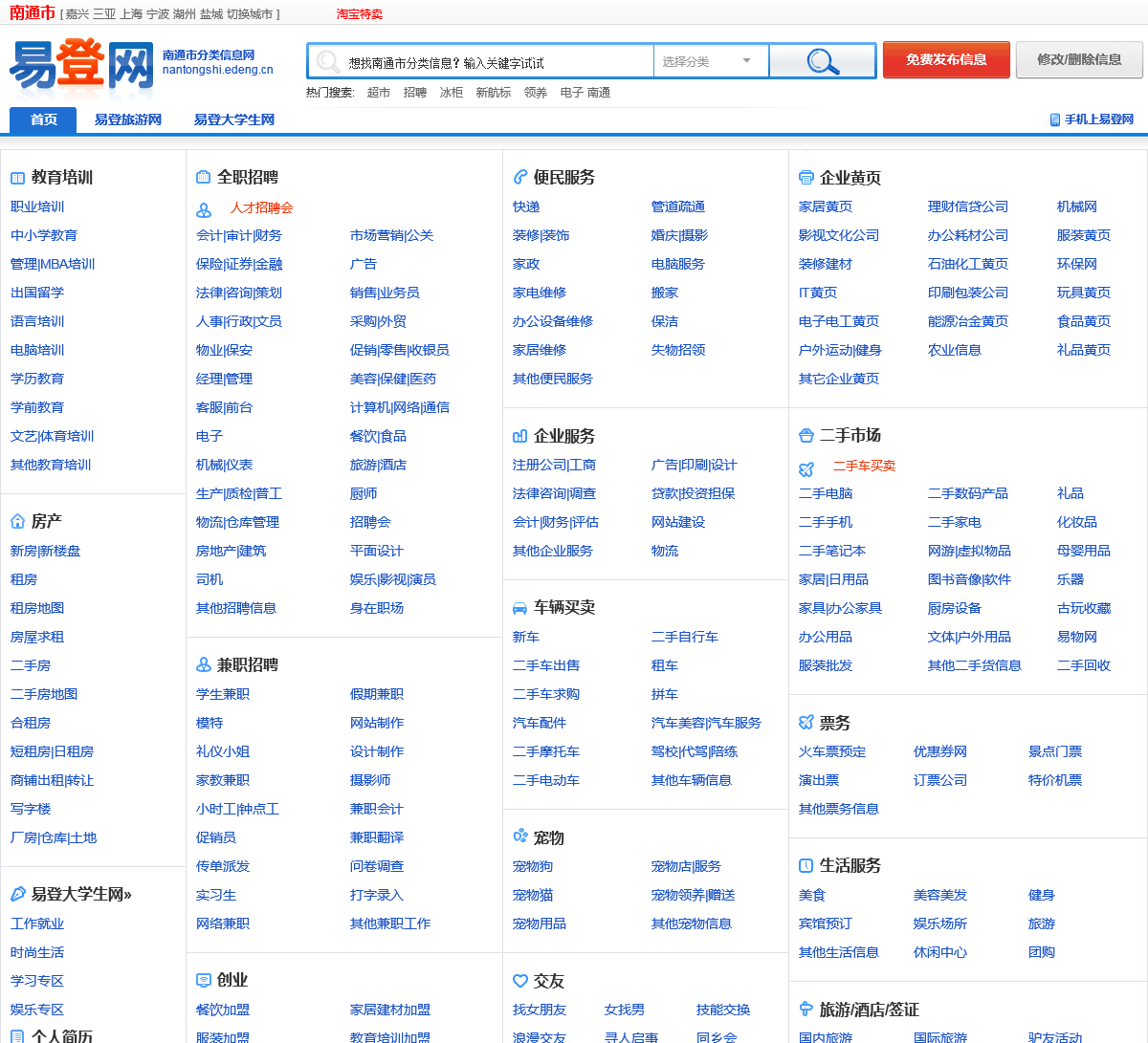 易登南通市分类信息网为您提供南通市分类信息,您可以免费发布和查询求职招聘,房屋出租,二手市场,生活服务等分类信息.