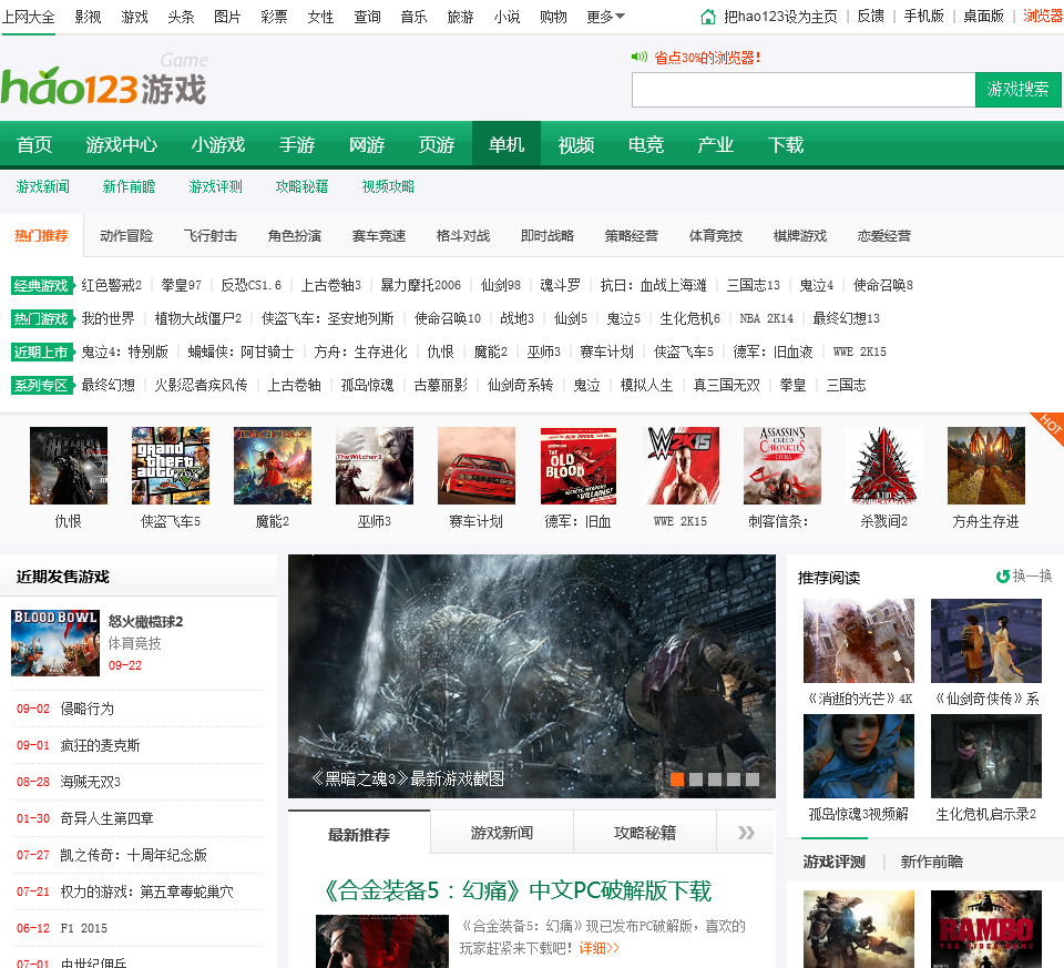 hao123单机游戏频道提供时下热门pc单机游戏下载、资讯及攻略,电视游戏大作一网打尽