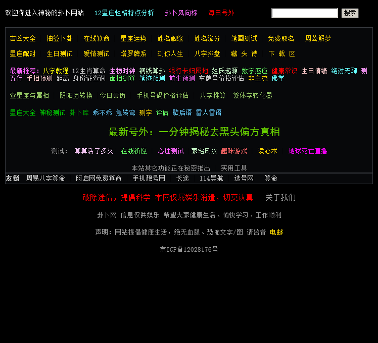 卦卜网于2020-07-22被0702投稿网收录,网站相关信息来自互联网或网友分享!由于(卦卜网)网站内容动态属性,时刻在变动,本站无法保证(卦卜网)网站内容真实可靠!请大家查阅时,谨慎选择、自辩真伪,感谢您的理解与支持。如果您在访问(卦卜网)时发现:网址失效、或网站存在非法等相关内容,请及时联系我们,我们会第一时间处理。