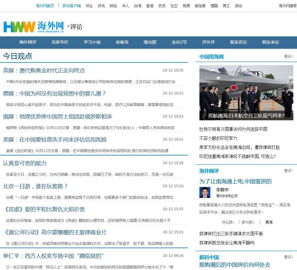 - 网站名称:海外网评论频道