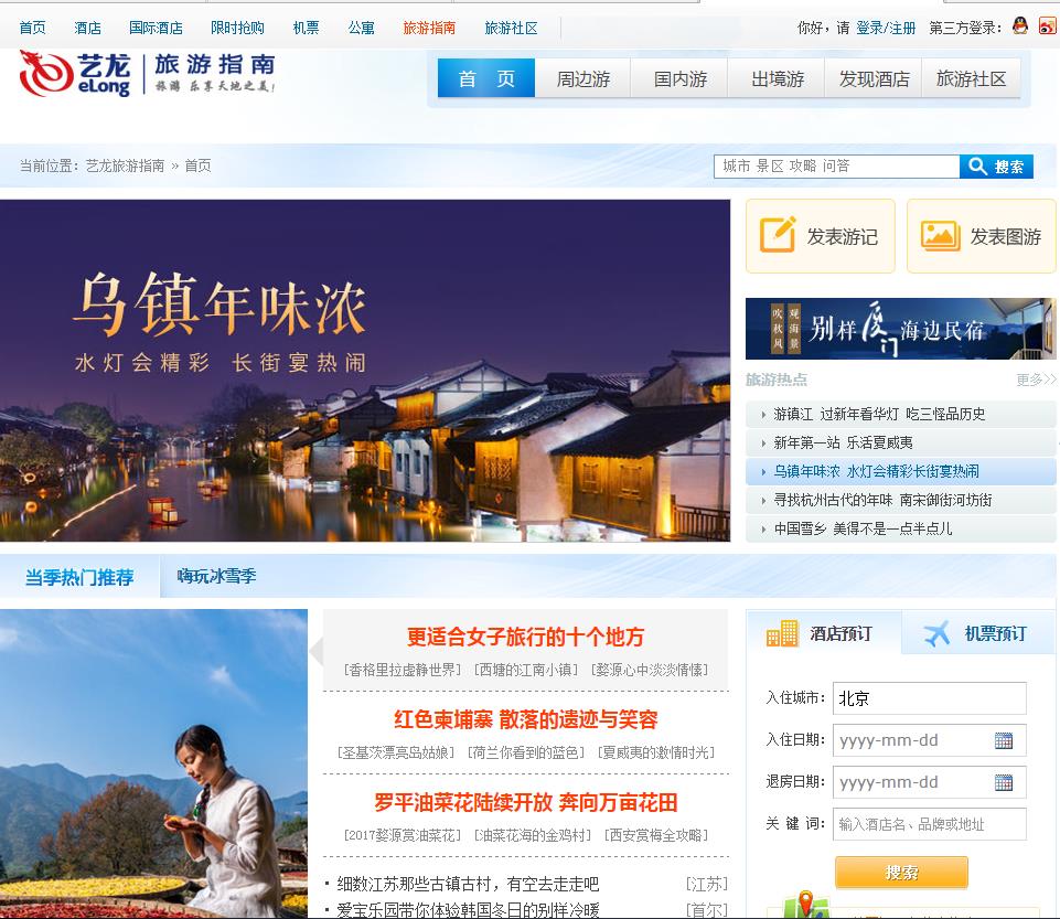 - 网站名称:艺龙旅游指南