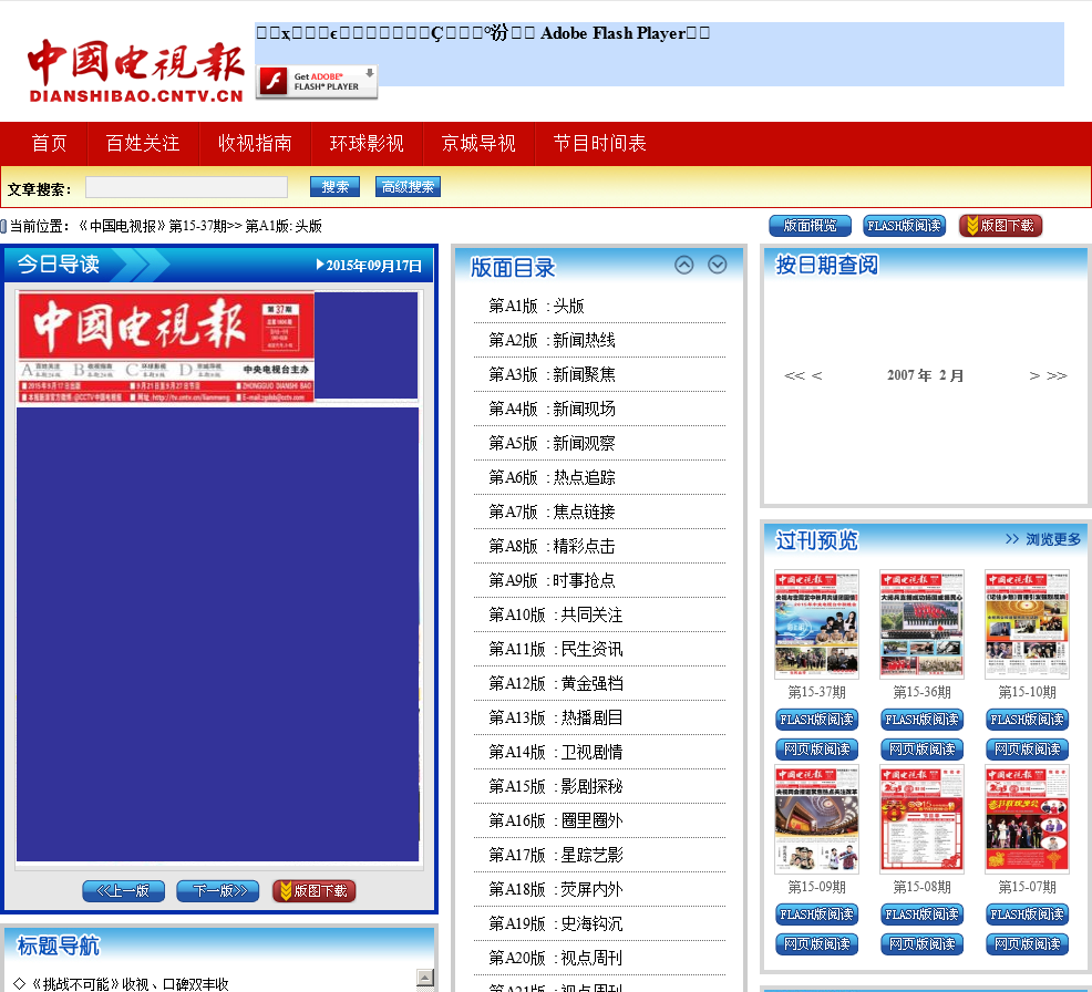 中国电视报数字报于2020-07-23被0702投稿网收录,网站相关信息来自互联网或网友分享!由于(中国电视报数字报)网站内容动态属性,时刻在变动,本站无法保证(中国电视报数字报)网站内容真实可靠!请大家查阅时,谨慎选择、自辩真伪,感谢您的理解与支持。如果您在访问(中国电视报数字报)时发现:网址失效、或网站存在非法等相关内容,请及时联系我们,我们会第一时间处理。