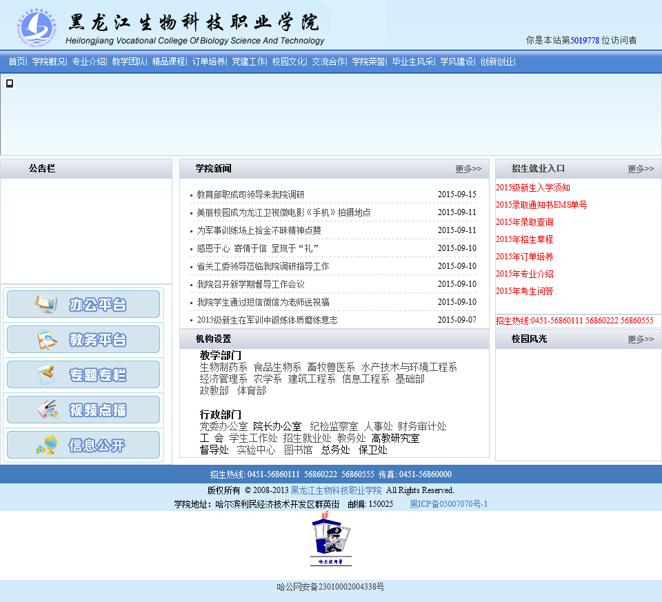 黑龙江生物科技职业学院于2020-07-24被0702投稿网收录,网站相关信息来自互联网或网友分享!由于(黑龙江生物科技职业学院)网站内容动态属性,时刻在变动,本站无法保证(黑龙江生物科技职业学院)网站内容真实可靠!请大家查阅时,谨慎选择、自辩真伪,感谢您的理解与支持。如果您在访问(黑龙江生物科技职业学院)时发现:网址失效、或网站存在非法等相关内容,请及时联系我们,我们会第一时间处理。