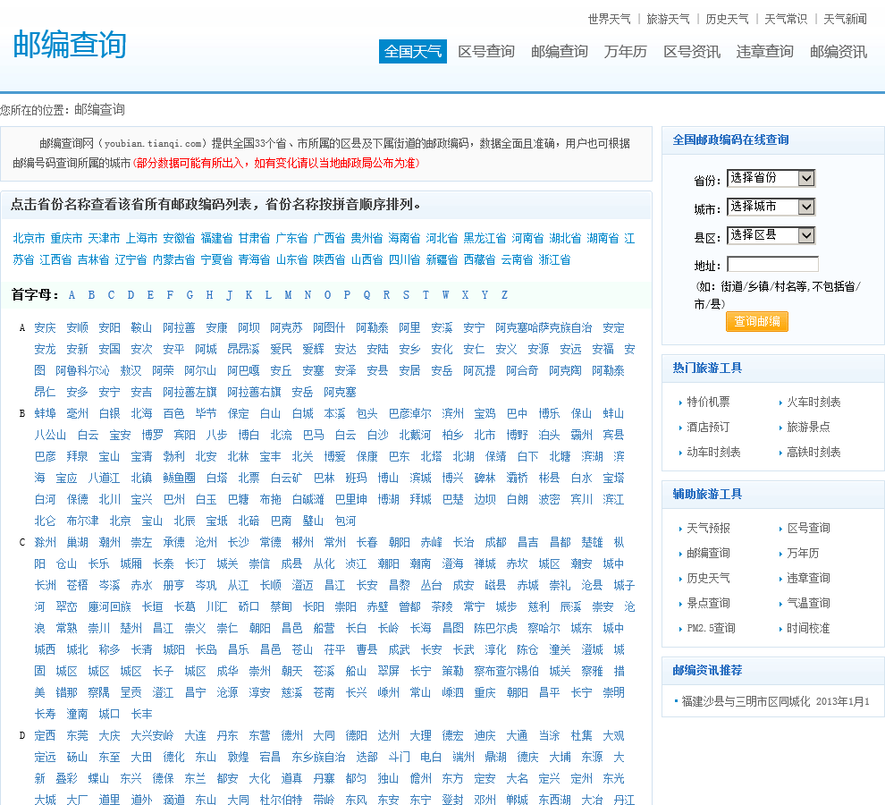 - 网站名称:邮编查询网