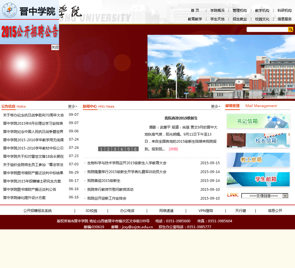 晋中学院于2020-07-25被0702投稿网收录,网站相关信息来自互联网或网友分享!由于(晋中学院)网站内容动态属性,时刻在变动,本站无法保证(晋中学院)网站内容真实可靠!请大家查阅时,谨慎选择、自辩真伪,感谢您的理解与支持。如果您在访问(晋中学院)时发现:网址失效、或网站存在非法等相关内容,请及时联系我们,我们会第一时间处理。