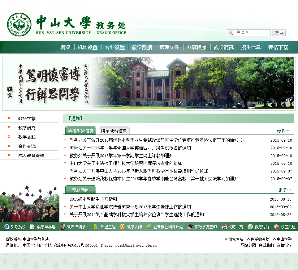 中山大学教务处于2020-07-26被0702投稿网收录,网站相关信息来自互联网或网友分享!由于(中山大学教务处)网站内容动态属性,时刻在变动,本站无法保证(中山大学教务处)网站内容真实可靠!请大家查阅时,谨慎选择、自辩真伪,感谢您的理解与支持。如果您在访问(中山大学教务处)时发现:网址失效、或网站存在非法等相关内容,请及时联系我们,我们会第一时间处理。