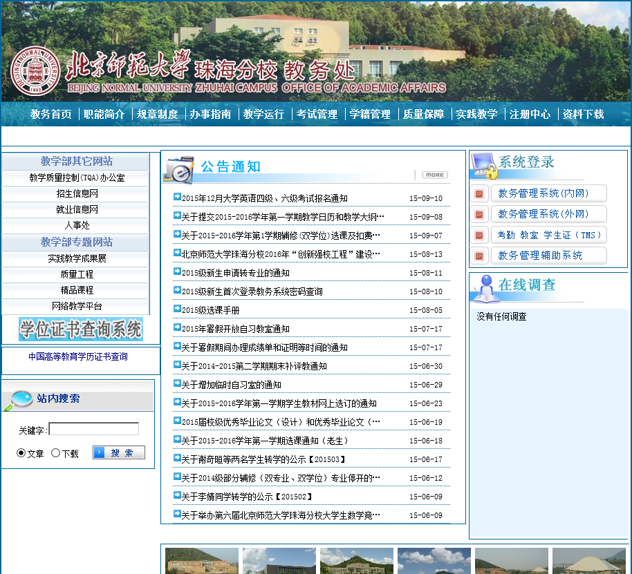 当前位置:主页 > 网站目录 > 北京师范大学珠海分校教务处jwc.bnuz.edu.cn