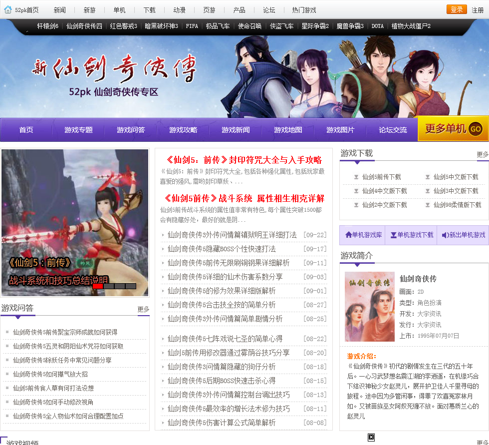 52pk仙剑奇侠传专区为剑迷们提供新的仙剑奇侠传1,2,3,4,5前传等版本下载,是玩家喜欢的仙剑奇侠传网站之一!