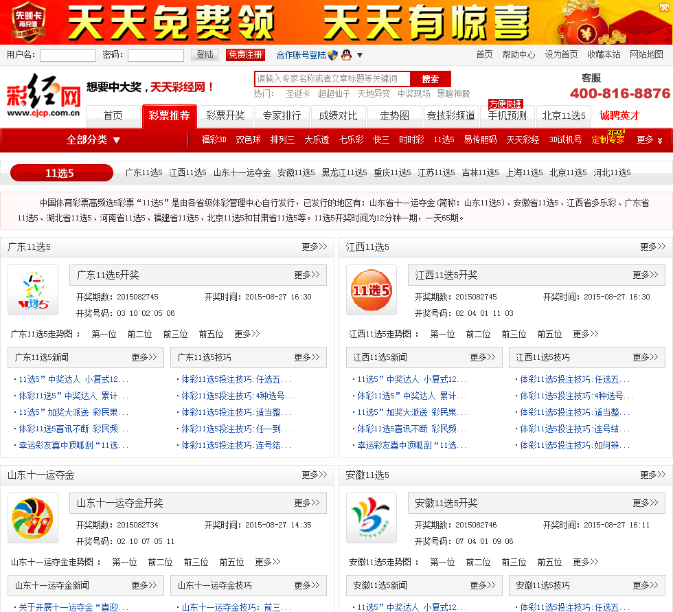 要想11选5中大奖天天彩经网提供体彩11选5、、高频彩票11选5、体育彩票11选5、快开彩票11选5等资讯数据图表,为还在中奖路上的体育彩票11选5彩民服务