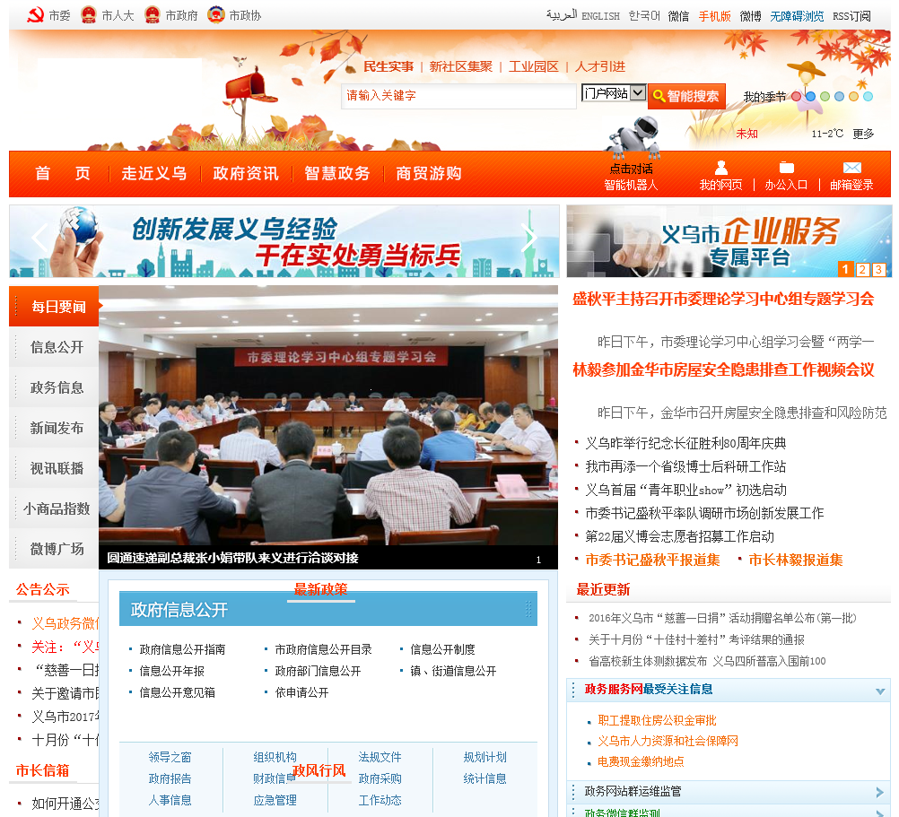 “中国义乌”政府门户网站由义乌市人民政府主办,义乌市电子政务办公室承办,集信息宣传、咨询服务、互动交流、网上办事为一体,是展示义乌整体形象的重要窗口,党和政府联系群众、服务公众的桥梁和纽带。欢迎您登陆“中国义乌”政府门户网站!