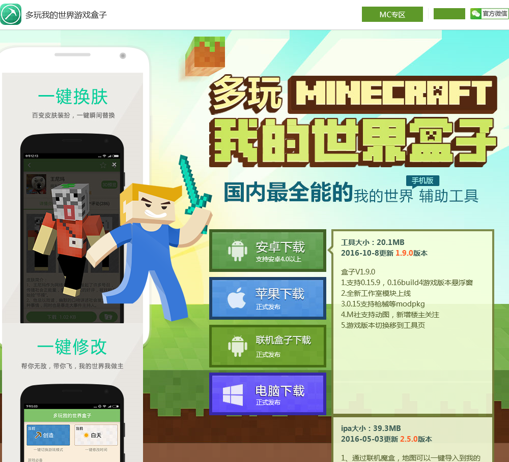 多玩我的世界盒子是我的世界MC手机版辅助工具,提供我的世界手机版地图存档下载,我的世界手机版作弊修改器,我的世界手机版种子,我的世界手机版下载,我的世界编辑器,我的世界方块启动器等