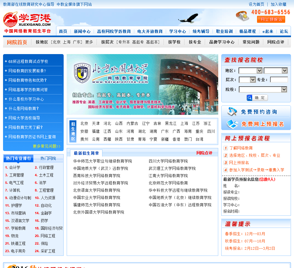 当前位置:主页 > 网站目录 > 全国网络教育学院网上招生预报名服务平台--学习港wangyuan.xuexi