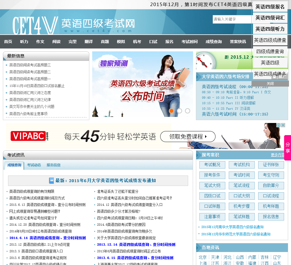 英语四级考试网于2020-07-28被0702投稿网收录,网站相关信息来自互联网或网友分享!由于(英语四级考试网)网站内容动态属性,时刻在变动,本站无法保证(英语四级考试网)网站内容真实可靠!请大家查阅时,谨慎选择、自辩真伪,感谢您的理解与支持。如果您在访问(英语四级考试网)时发现:网址失效、或网站存在非法等相关内容,请及时联系我们,我们会第一时间处理。