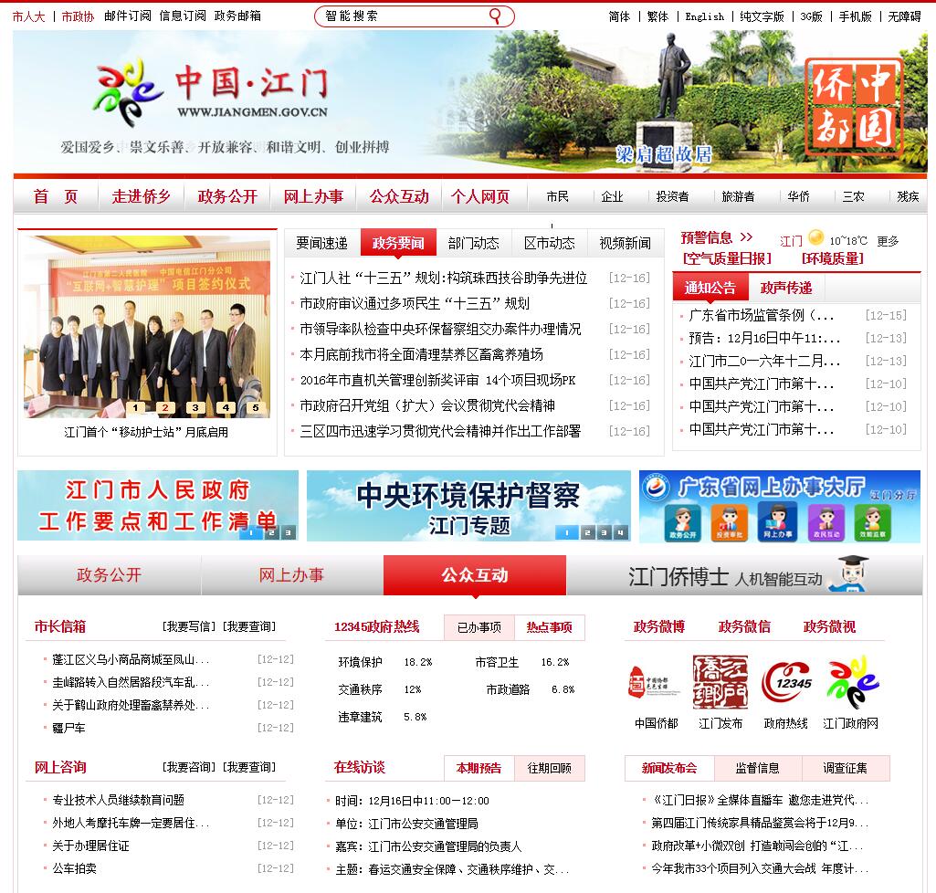 - 网站名称:江门市人民政府网