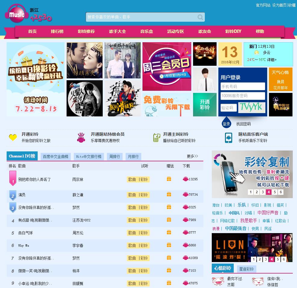 当前位置:主页 > 网站目录 > 中国移动通信浙江有限公司浙江彩铃网站zj.12530.com