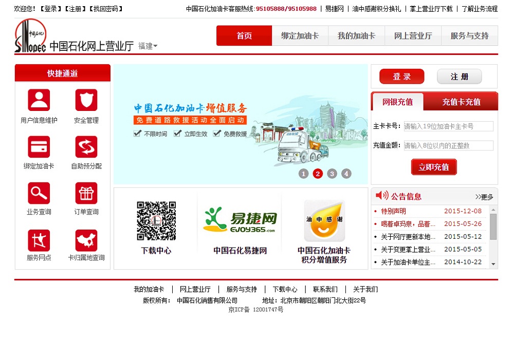 中国石化加油卡网上营业厅