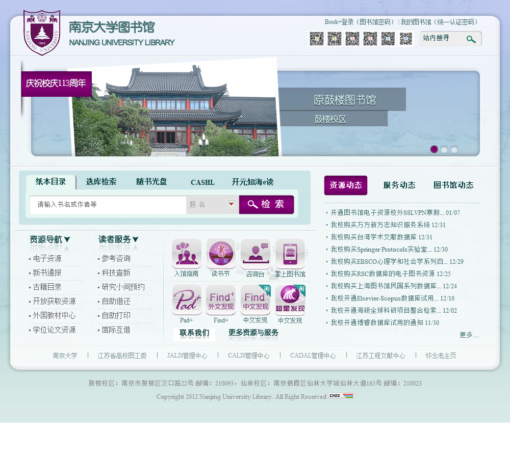 南京大学图书馆于2020-07-31被0702投稿网收录,网站相关信息来自互联网或网友分享!由于(南京大学图书馆)网站内容动态属性,时刻在变动,本站无法保证(南京大学图书馆)网站内容真实可靠!请大家查阅时,谨慎选择、自辩真伪,感谢您的理解与支持。如果您在访问(南京大学图书馆)时发现:网址失效、或网站存在非法等相关内容,请及时联系我们,我们会第一时间处理。