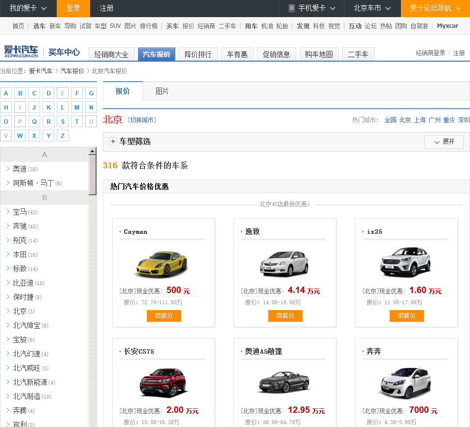 - 网站名称:爱卡汽车报价中心