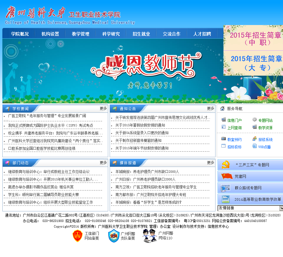 广州医科大学卫生职业技术学院于2020-07-31被0702投稿网收录,网站相关信息来自互联网或网友分享!由于(广州医科大学卫生职业技术学院)网站内容动态属性,时刻在变动,本站无法保证(广州医科大学卫生职业技术学院)网站内容真实可靠!请大家查阅时,谨慎选择、自辩真伪,感谢您的理解与支持。如果您在访问(广州医科大学卫生职业技术学院)时发现:网址失效、或网站存在非法等相关内容,请及时联系我们,我们会第一时间处理。