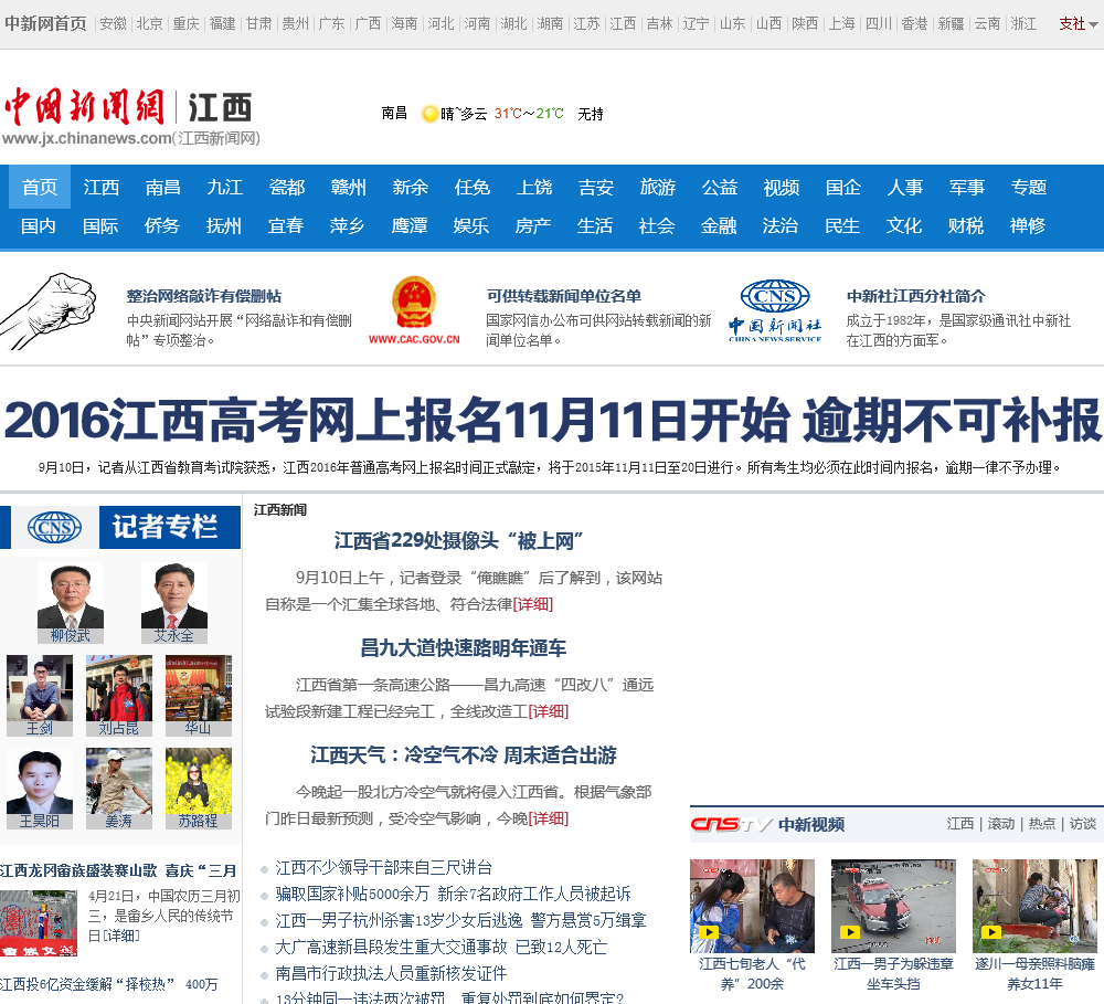 江西新闻网于2020-07-31被0702投稿网收录,网站相关信息来自互联网或网友分享!由于(江西新闻网)网站内容动态属性,时刻在变动,本站无法保证(江西新闻网)网站内容真实可靠!请大家查阅时,谨慎选择、自辩真伪,感谢您的理解与支持。如果您在访问(江西新闻网)时发现:网址失效、或网站存在非法等相关内容,请及时联系我们,我们会第一时间处理。