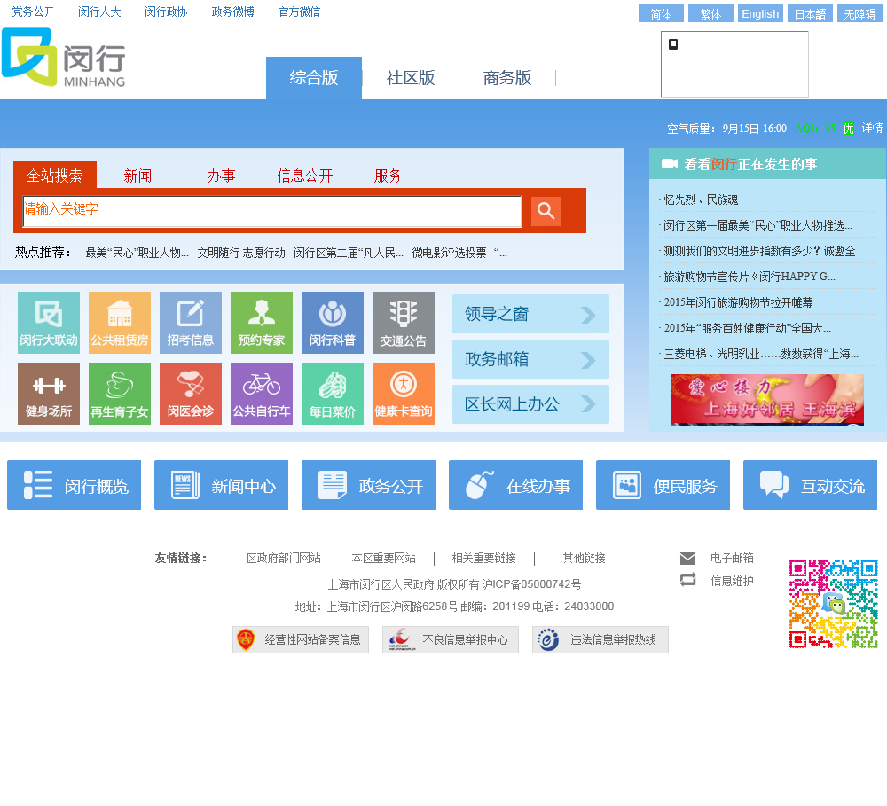 闵行区人民政府网站于2020-07-31被0702投稿网收录,网站相关信息来自互联网或网友分享!由于(闵行区人民政府网站)网站内容动态属性,时刻在变动,本站无法保证(闵行区人民政府网站)网站内容真实可靠!请大家查阅时,谨慎选择、自辩真伪,感谢您的理解与支持。如果您在访问(闵行区人民政府网站)时发现:网址失效、或网站存在非法等相关内容,请及时联系我们,我们会第一时间处理。