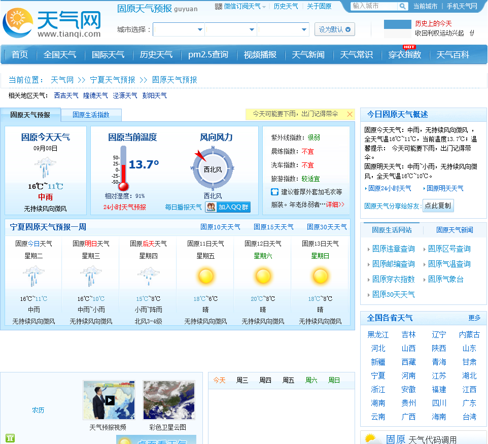 固原天气预报于2020-08-01被0702投稿网收录,网站相关信息来自互联网或网友分享!由于(固原天气预报)网站内容动态属性,时刻在变动,本站无法保证(固原天气预报)网站内容真实可靠!请大家查阅时,谨慎选择、自辩真伪,感谢您的理解与支持。如果您在访问(固原天气预报)时发现:网址失效、或网站存在非法等相关内容,请及时联系我们,我们会第一时间处理。