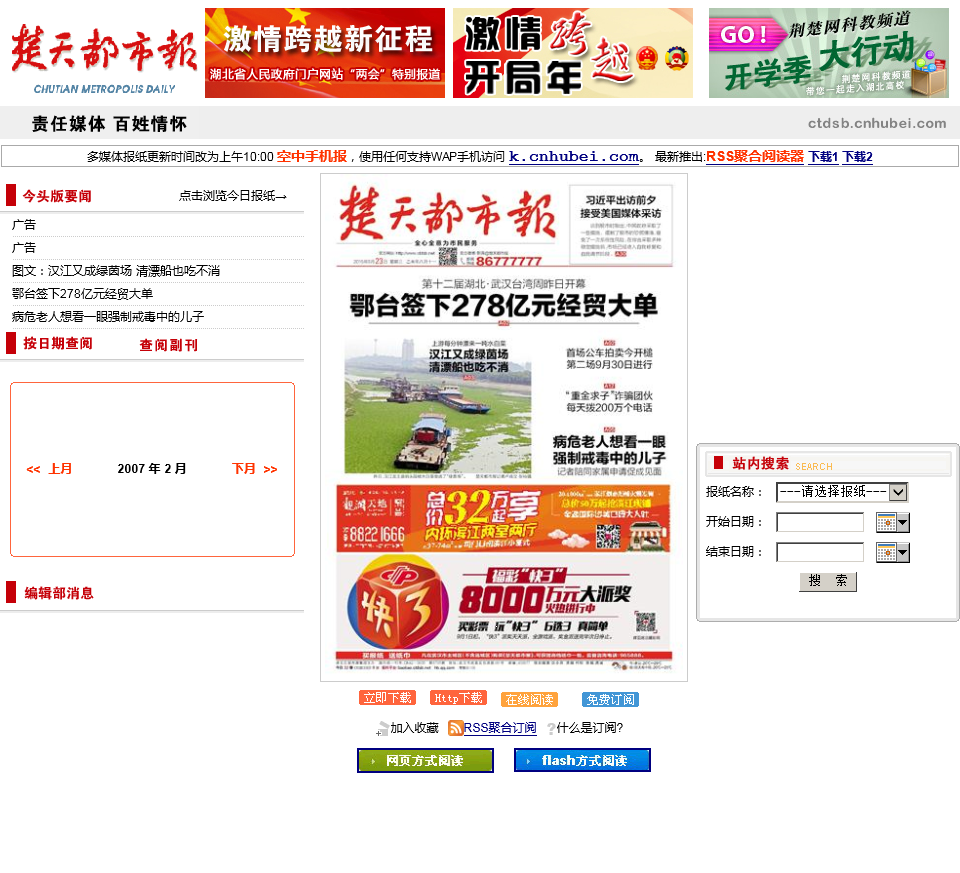 楚天都市报电子版于2020-08-01被0702投稿网收录,网站相关信息来自互联网或网友分享!由于(楚天都市报电子版)网站内容动态属性,时刻在变动,本站无法保证(楚天都市报电子版)网站内容真实可靠!请大家查阅时,谨慎选择、自辩真伪,感谢您的理解与支持。如果您在访问(楚天都市报电子版)时发现:网址失效、或网站存在非法等相关内容,请及时联系我们,我们会第一时间处理。