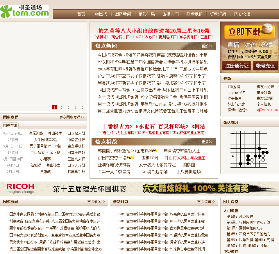 TOM棋圣道场于2020-08-01被0702投稿网收录,网站相关信息来自互联网或网友分享!由于(TOM棋圣道场)网站内容动态属性,时刻在变动,本站无法保证(TOM棋圣道场)网站内容真实可靠!请大家查阅时,谨慎选择、自辩真伪,感谢您的理解与支持。如果您在访问(TOM棋圣道场)时发现:网址失效、或网站存在非法等相关内容,请及时联系我们,我们会第一时间处理。