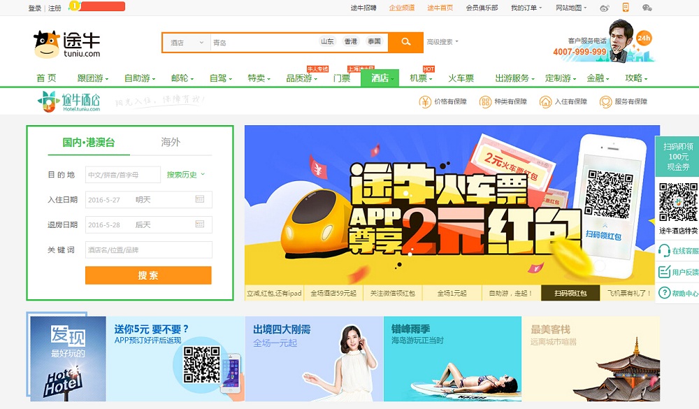 - 网站地址:hotel.tuniu.com