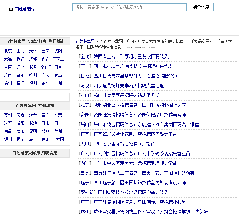 百姓赶集网于2020-08-01被0702投稿网收录,网站相关信息来自互联网或网友分享!由于(百姓赶集网)网站内容动态属性,时刻在变动,本站无法保证(百姓赶集网)网站内容真实可靠!请大家查阅时,谨慎选择、自辩真伪,感谢您的理解与支持。如果您在访问(百姓赶集网)时发现:网址失效、或网站存在非法等相关内容,请及时联系我们,我们会第一时间处理。