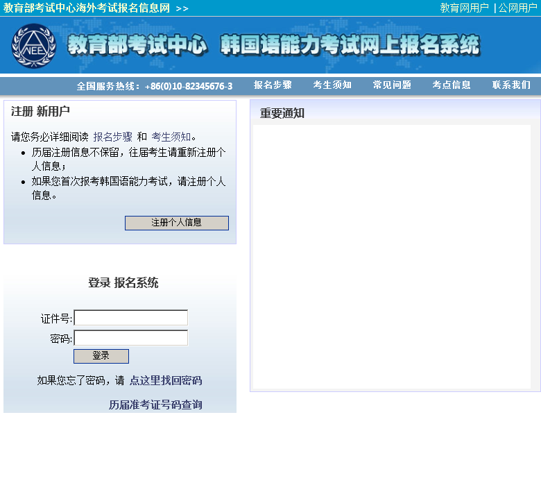 教育部考试中心韩国语能力考试网上报名网站